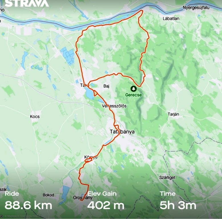Oroszlány-Dunaalmás-Tardos-Tatabánya = 89 km/402 szint