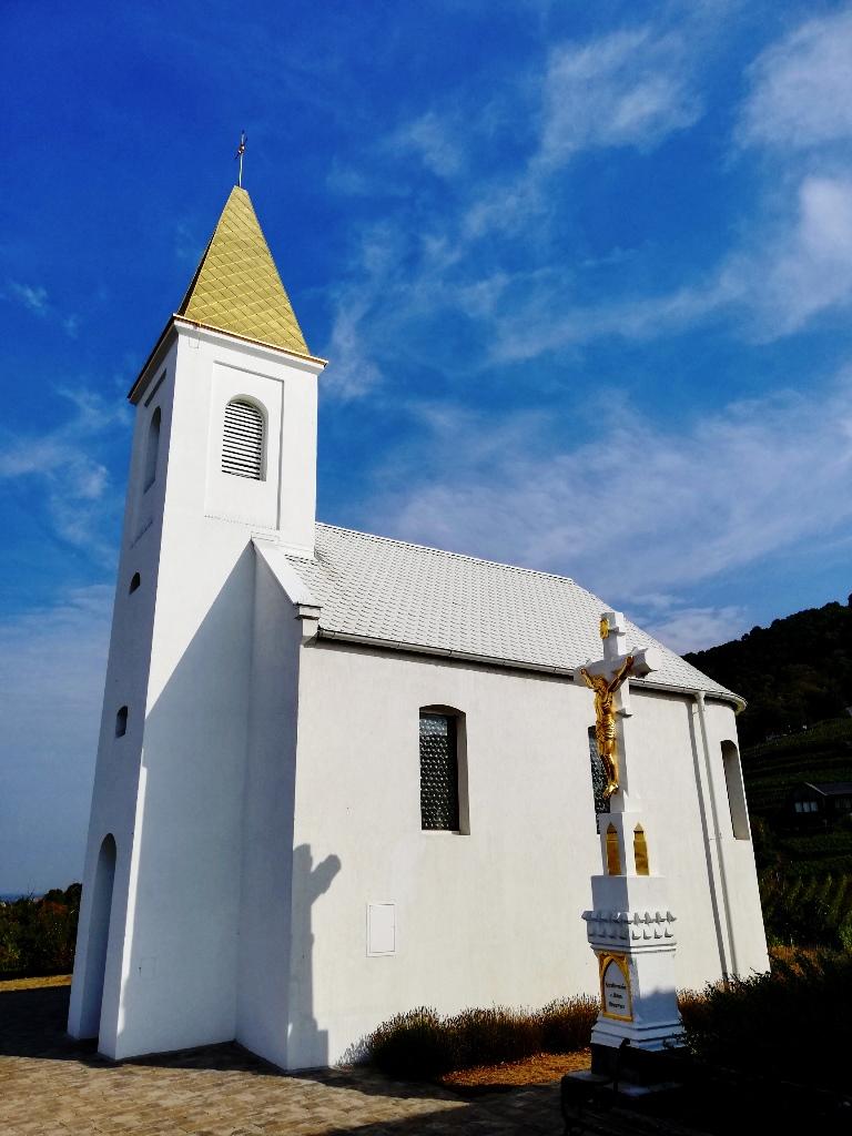 Reggel, fél 9 után indultunk el, és Somlóvásáhely felől közelítettük meg a hegyet. Először, a Somló délnyugati oldalán magasodó Szent Ilona-kápolnához (másik nevén Szent Kereszt-templom) tekertünk fel. A teraszos jellegű kiszögellésen álló templom előtt, szép, rendezett teret találunk, ahonnan gyönyörű panoráma tárul elénk. A lábaink alatt heverő, lépcsőzetes szőlőültetvények, páratlan érzést és hangulatot adnak. Egyébként, tiszta időben, innen jól látszódnak a horizonton, a Balaton-felvidék tanúhegyei is.