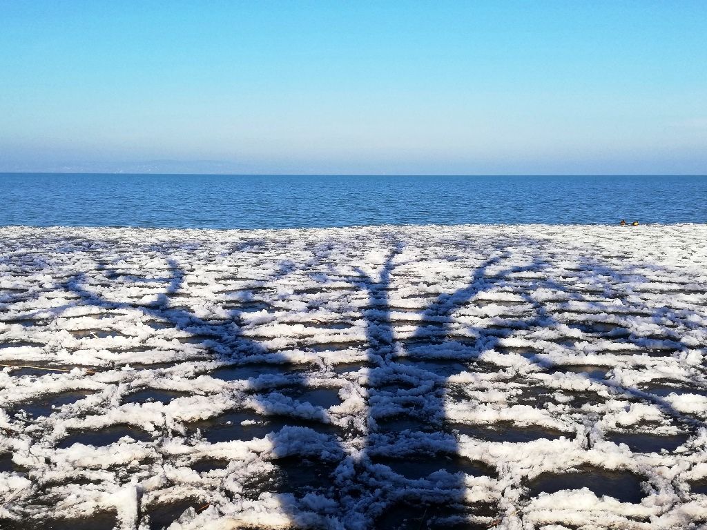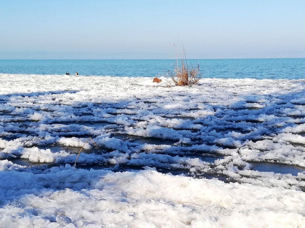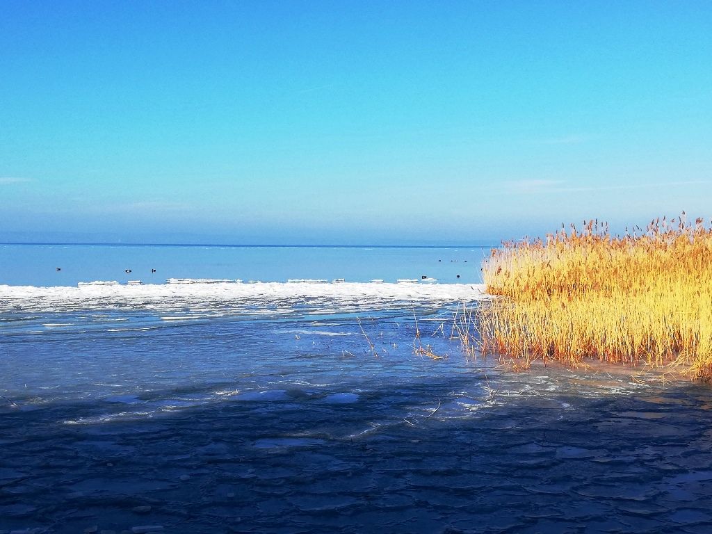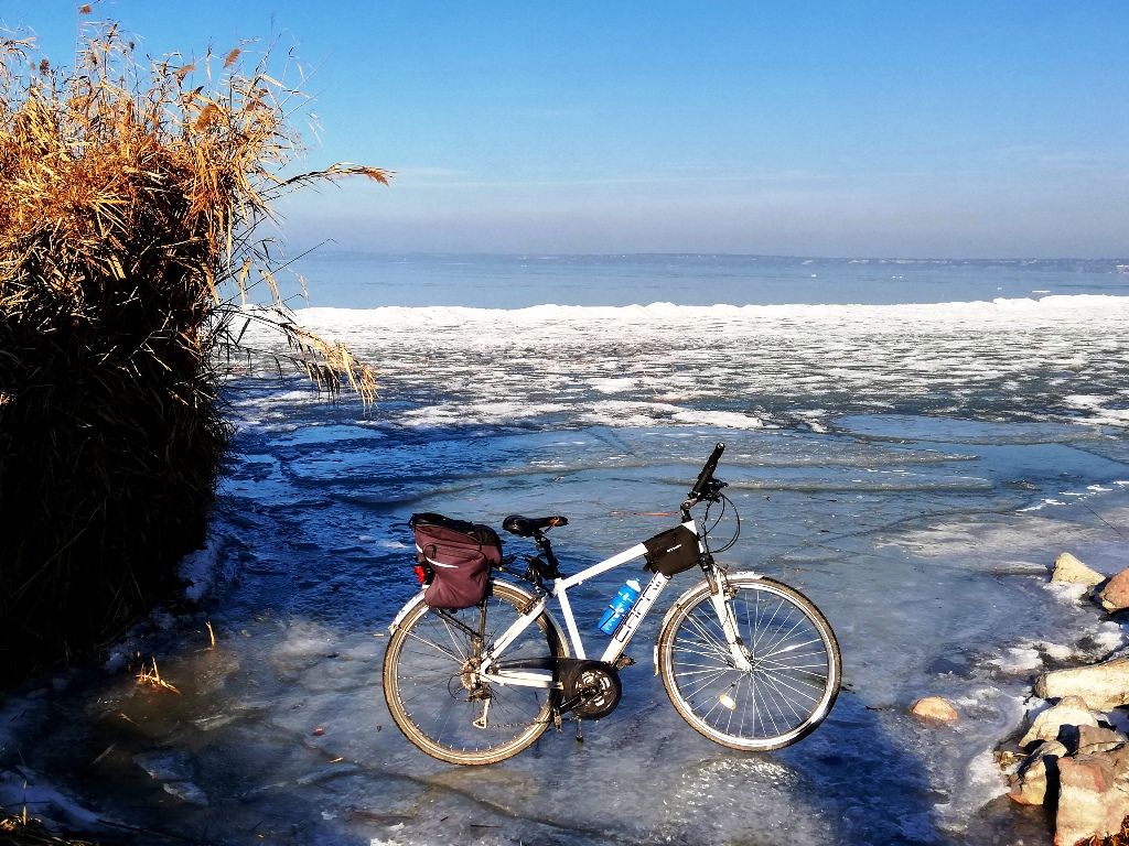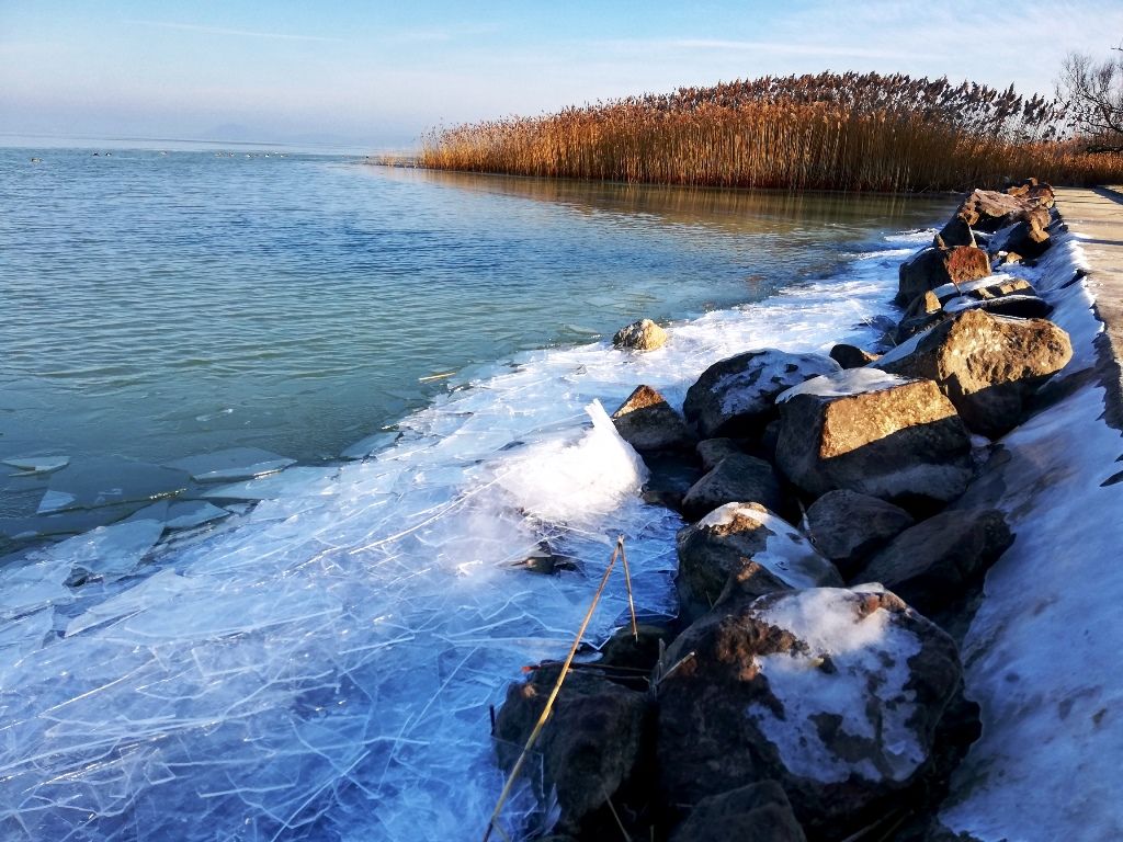 Ez az utolsó, harmadik nap: leghidegebb, legcsípősebb, legjegesebb (szerencsére csak a Balcsi, nem az aszfalt), legtöbbet napozgatós – muszáj volt süttetni a pofimat, az is jó melegen tartott 🙂 -, és valami iszonyat lassan, legkevesebbet tekergőzős. Nagyon hideg a reggel, még 10 órakor is csak -1 fok, de muszáj indulni. 🙂 Végülis negyed 11 után pattantam fel a bicajra. Lényegében szinte végig, leginkább a partközelben gurulgatva, elmélázva, kőre kiülve, elmerengve, és fotózgatva haladtam a végállomásom, Balatonkenese felé. A déli parton mindig hamarabb jegesedik a víz, mint az északin – ezért is gondoltam, hogy inkább ezen részen zárom a három napot. Be is jött, nagyon hangulatos a jeges, jégdarabokkal teli, partmentén befagyott Balcsi is. 🙂